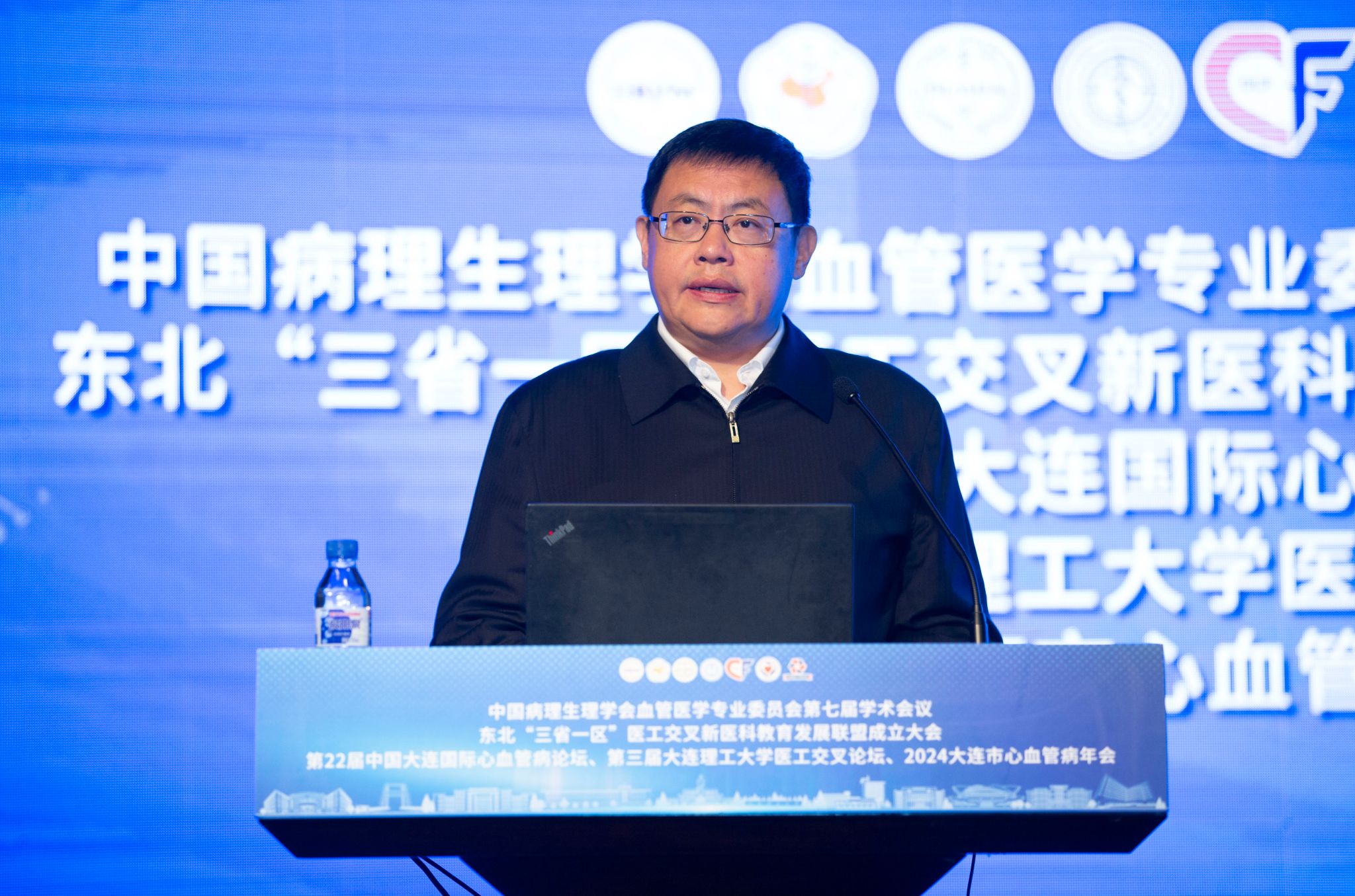 中华医学会心血管分会主委、中国工程院院士韩雅玲,中国病理生理学会血管医学专业委员会名誉主委、康复大学校长、中国工程院院士董尔丹,大连市人民政府领导,我校校长、中国科学院院士贾振元,党委常务副书记宋丹等出席开幕式。来自全国90余所高校和科研院所、30所东北“三省一区”医工交叉新医科教育联盟成员高校的领导嘉宾,以及300余名海内外临床医学、基础医学和理工科专家同仁、研究生及相关学科人员代表参加活动。